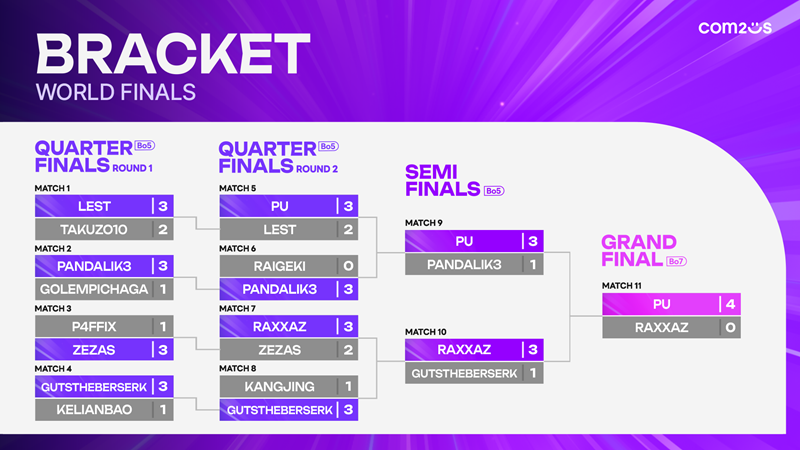 決勝に進んだのはアジアパシフィック優勝のPU選手、ヨーロッパカップ優勝のRAXXAZ選手の2人。地域カップ優勝者同士の激戦が見込まれましたが、PU選手が圧倒的な力を披露しなんとストレートで勝利を収め、SWC2025世界チャンピオンに輝きました。