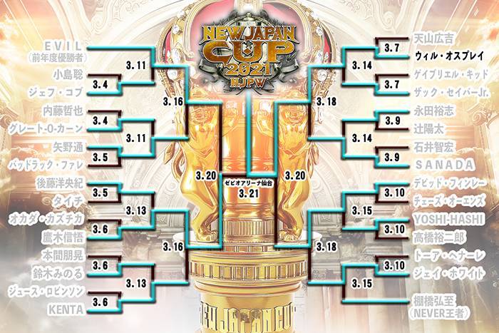 3月21日(日)、宮城・ゼビオアリーナ仙台で『NEW JAPAN CUP 2021』最終戦が開催され、総勢32選手がしのぎを削ったトーナメントがいよいよファイナルを迎えた。
