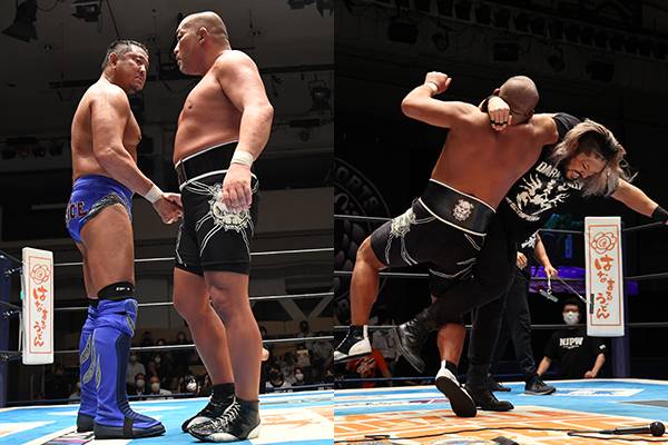 第2試合は上村優也が現IWGP世界ヘビー級王者の鷹木信悟と対決。上村はジャーマンスープレックスを完璧に決めて見せ場を作るも、閂スープレックスは鷹木が回避。最後は豪快なパンピングボンバーの前に、上村が玉砕した。
