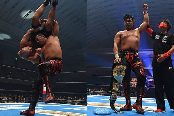メイン(第6試合)はIWGP世界ヘビー級王者の鷹木信悟とNEVER6人タッグ王者の石井智宏による公式戦。真っ向勝負が信条の両雄は、開始のゴングと同時に激しい乱打戦を展開。その後も合わせ鏡のような応酬を繰り広げ、意地をぶつけ合う。終盤、壮絶な打撃の応酬となり、鷹木はヘッドバットで石井の動きを止めると、ラスト・オブ・ザ・ドラゴンにつなぎ死闘に終止符を打った。