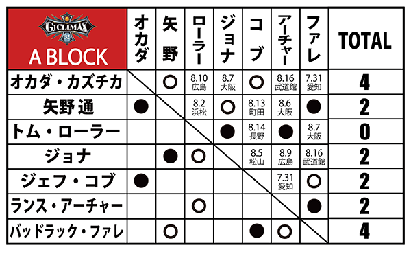 7月30日(土)、愛知・愛知県体育館(ドルフィンズアリーナ)で『G1 CLIMAX 32』第8戦が開催され、各ブロック公式戦を中心に激闘が繰り広げられた。