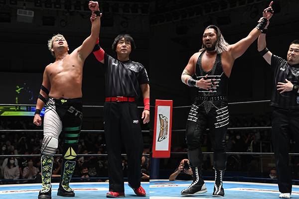 メインイベント(第8試合)ではTV王座トーナメントの1回戦として、CHAOSのYOSHI-HASHIとUNITED EMPIREのジェフ・コブが対峙。これまで『G1 CLIMAX』や『NEW JAPAN CUP』など、コブに煮え湯を飲まされ続けてるYOSHI-HASHIは、その雪辱を果たすべく序盤から猛攻。しかし、コブも持ち前のパワーと機動力でペースを握らせず、YOSHI-HASHIは厳しい戦いに。終盤、コブは10.10両国のタッグマッチでYOSHI-HASHIを仕留めたように、エルボーでグロッキー状態の相手のリストをつかみ、一気にツアー・オブ・ジ・アイランドを狙う。だが、YOSHI-HASHIは回避すると、奥の手である業で丸め込み、技アリの3カウントを奪取。コブからシングル初勝利をゲットした。