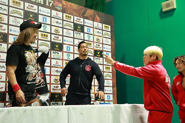 また、第6試合終了後のバックステージに、プロレスリング・ノアの金剛が登場。昨年の1.8横浜アリーナで敗北を喫したL・I・Jに宣戦布告した。