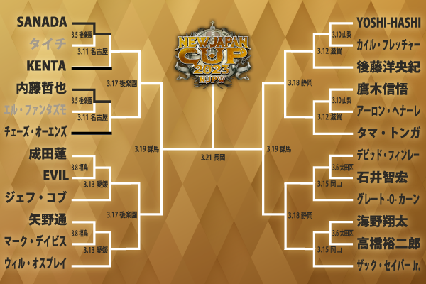 この結果、3.11名古屋の2回戦ではSANADAがシード選手のKENTA、内藤はシード選手のチェーズ・オーエンズと対戦することに。
