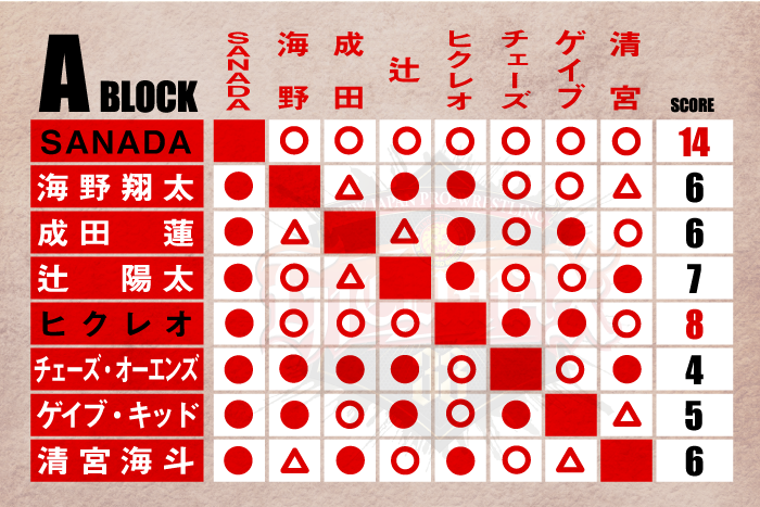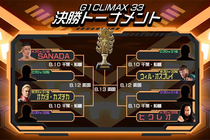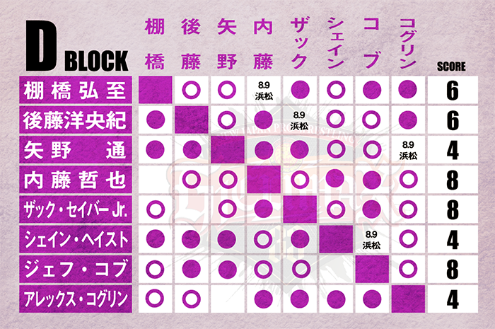 現在、Bブロックはすでに5勝1敗のオカダが決勝トーナメント進出が決定。残り1枠が今大会で決定する。