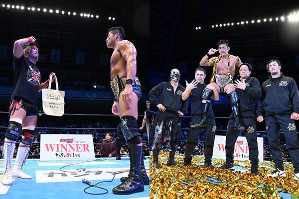 試合後、SANADAは師匠・武藤敬司さんベルトを贈られる。続いて『G1 CLIMAX』覇者の内藤が現れ宣戦布告すると、SANADAも呼応。そしてSANADAは最後、“ギフト”を演出すると、「1月4日、東京ドームまでSANADAはますます“バク進”します!」と宣言した。