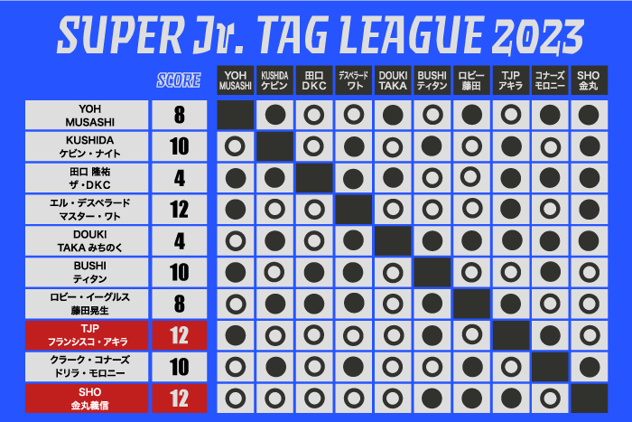 11月2日(木)、大阪・大阪府立体育会館・第2競技場(エディオンアリーナ大阪)で『カンタン酢™ Presents SUPER Jr. TAG LEAGUE 2023 ~Road to POWER STRUGGLE ~』第9戦が行なわれ、最終公式戦を中心に激闘が繰り広げられた。