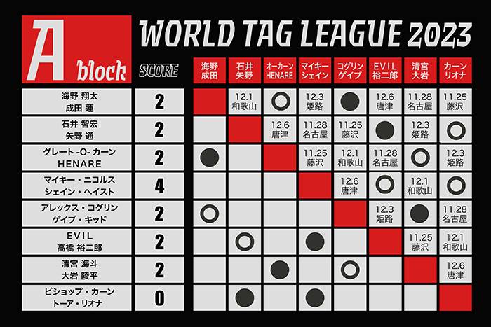 11月23日(木・祝)、神奈川・横浜武道館でタッグの祭典『レック Presents WORLD TAG LEAGUE 2023』第3戦が開催された。今大会ではAブロックの公式戦2戦目(全7戦)の4試合を中心に、熱闘が繰り広げられた。