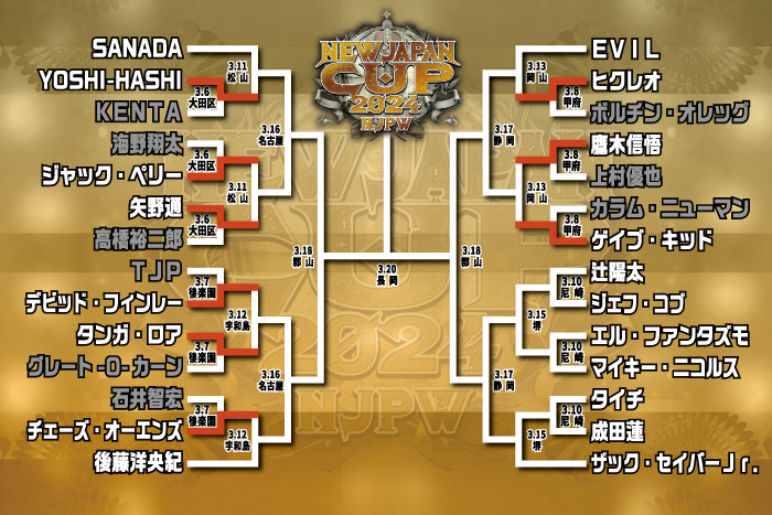 この結果、3.13岡山の2回戦ではヒクレオがEVIL、鷹木がゲイブと対戦することが決定した。