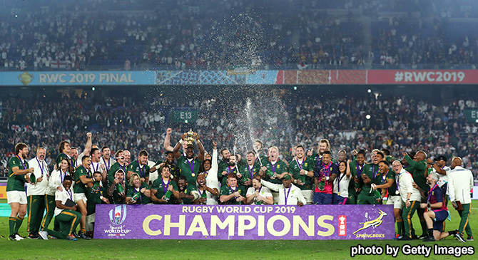 「政治的なことが国内にはありますが、ラグビーを観ることで皆さんへ幸福をもたらせるようにしてきました」とは、優勝した南アフリカ代表のラシー・エラスムス監督。眼光を鋭くしたまま目じりを下げ、白い歯をのぞかせる。